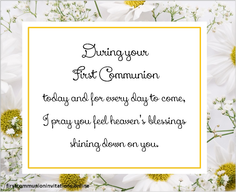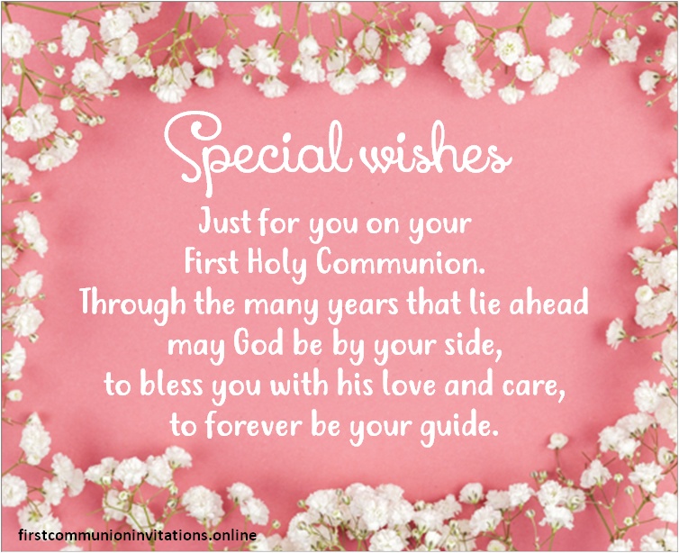 5. Special wishes. Just for you on your first holy communion. Through the many years that lie ahead may god be by your side, to bless you with his love and care, to forever be your guide.