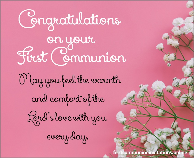 2. Congratulations on your first communion. May you feel the warmth and comfort of the Lord’s love with you every day.