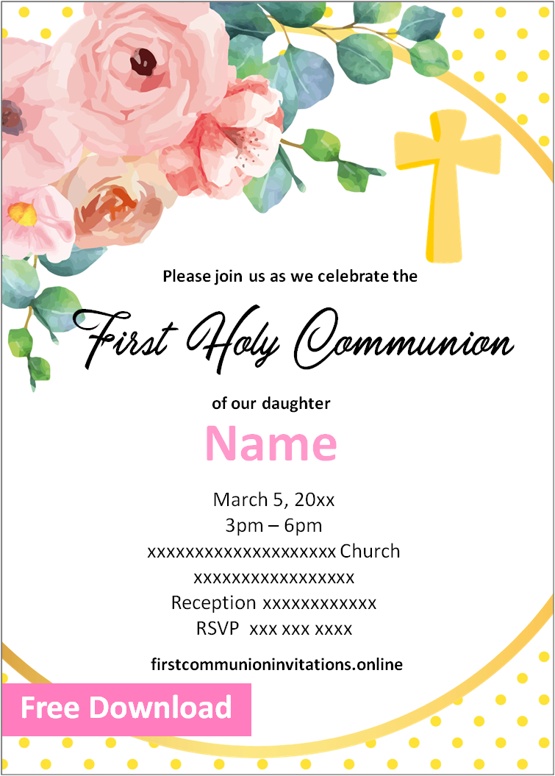 All First Communion cards for Girls are printable. Digital Invitations Ready to Print or Share Did you find your perfect First Communion party invitation? With this selection of invitations you will discover delicate, beautiful, simple, modern, traditional invitations, and much more. Choose the one you like the most and encourage yourself to personalize it to celebrate the communion of whoever you want.